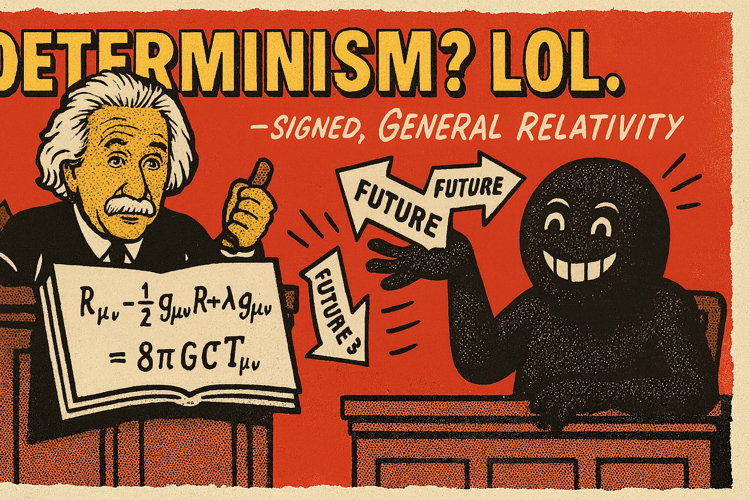 There are solutions to the field equations of Einstein (that #3 above) where you literally can’t define a “moment across the entire universe.” Not because you’re not clever enough (you’re an intellectual beast!), but because you can prove they don’t exist. In other words, in general relativity, there may not be a way to “slice” spacetime into “all of space at time t.” And without that, you can’t even formulate what “global determinism” means, even though you do retain “local determinism.”